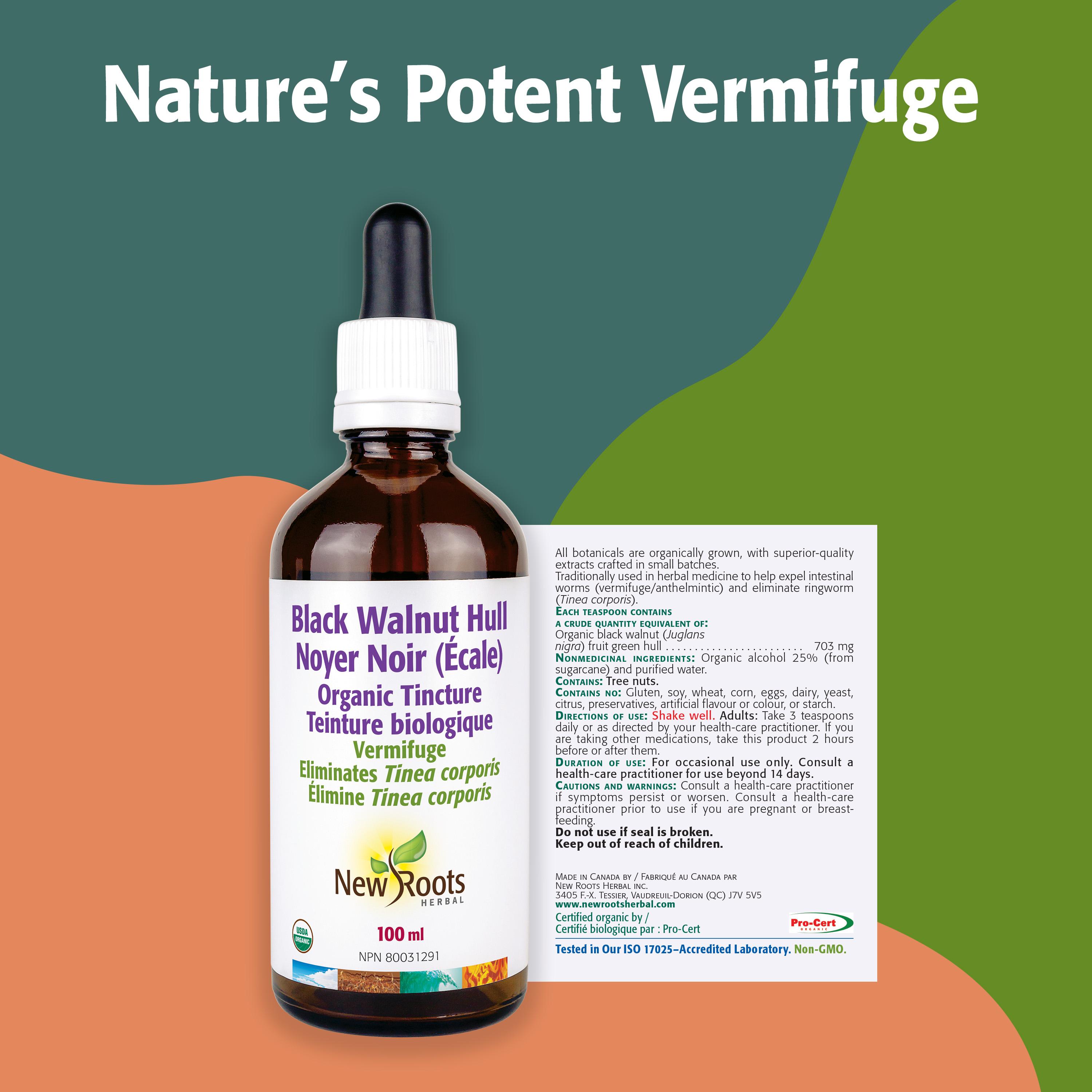 Black walnut (Juglans nigra) has been a staple in herbal medicine for centuries, prized for the potent compounds found in its outer covering. Our extract is derived specifically from the green hull—harvested before it turns black—to capture the peak concentration of active constituents like juglone and tannins. This organic tincture is traditionally used as a vermifuge (anthelmintic) to help the body naturally expel intestinal worms and restore internal balance. Beyond its internal use for parasites, Black Walnut Hull is highly valued for its antifungal properties. It is effective in eliminating Tinea corporis, commonly known as ringworm. Whether used as part of a short-term cleanse or to address a specific fungal concern, our small-batch liquid extract ensures you receive a premium, organic formulation free from synthetic ingredients and artificial preservatives.