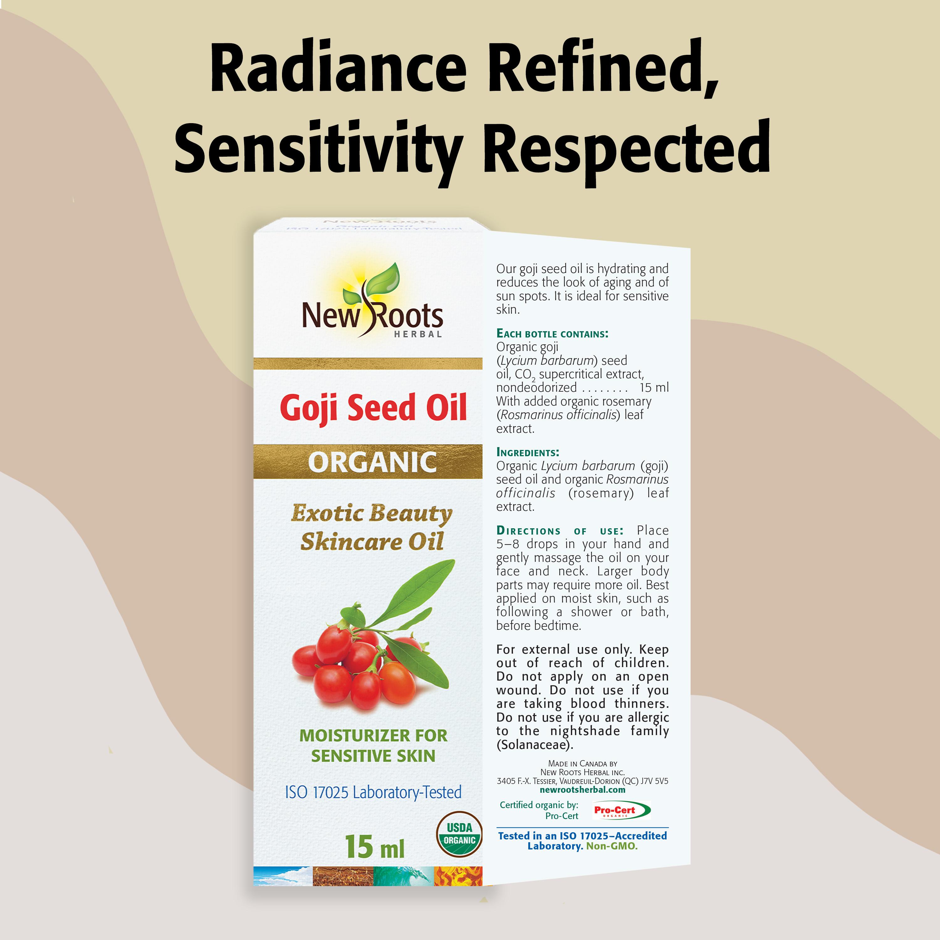 | Organic goji (Lycium barbarum) seed oil, CO₂ supercritical extract, nondeodorized | 15 ml |