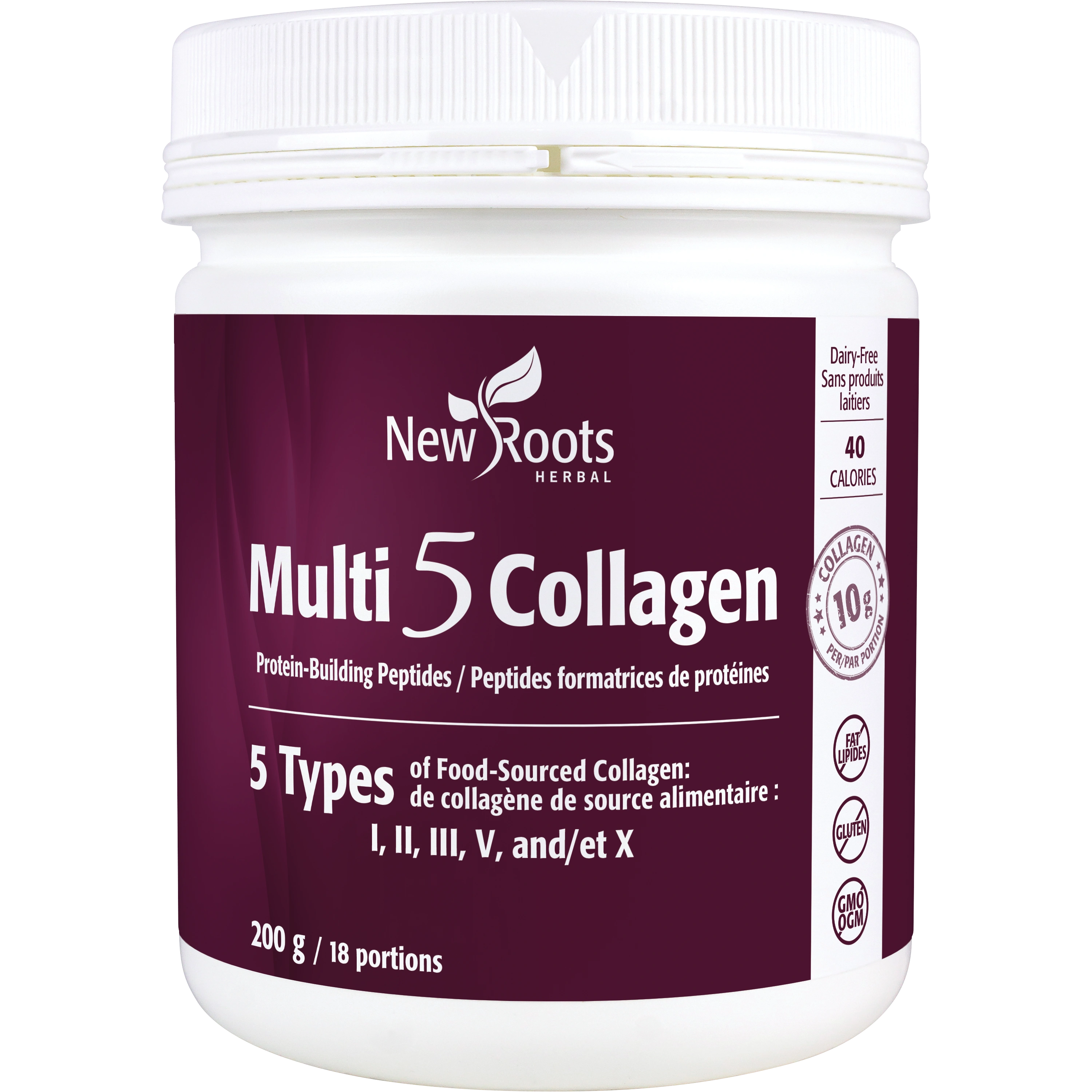 Multi 5 Collagen is a comprehensive source of the protein-building peptides I, II, III, V, and X. These five naturally occurring forms of collagen protein are crucial for healthy skin, muscle, and more. They also help produce antibodies and build and repair body tissues.
