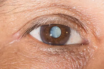 Cataract symptoms can also include difficulty with night vision, sensitivity to light, the fading of colours, and even double vision in one eye. Most cataracts are related to aging.[2] Aside from aging, cataracts can also develop after surgery from other eye problems like glaucoma.
