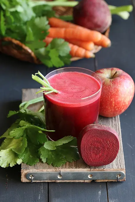 Peel your beet and carrots, and cut them into large