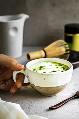 Whisk once more and serve. Top with whipped coconut cream for more healthy fats and a sprinkle of matcha. If you have any leftovers, store them in the fridge. It will get very thick, just rewarm and whisk it over the stove, and it will be as good as fresh.